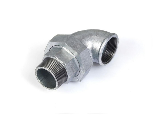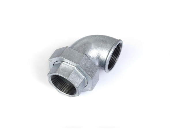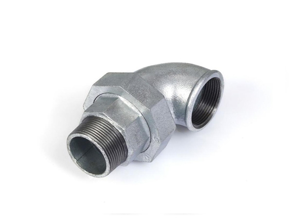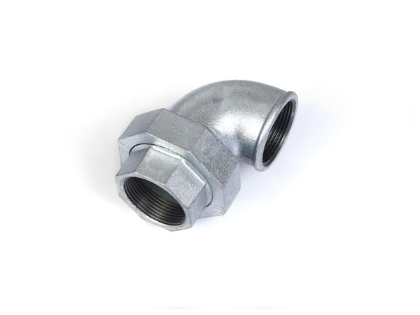 Malleable cast iron flexible joint elbow M/F conical joint seat